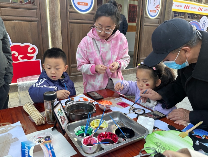 临汾支队的展馆前,等待面部彩绘的小朋友排起了长队,馆内游客热情高涨,盖章、掷飞镖、领奖品,互动中学知识的形式很受欢迎。
