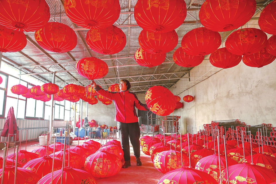 晾晒红灯笼-新华网