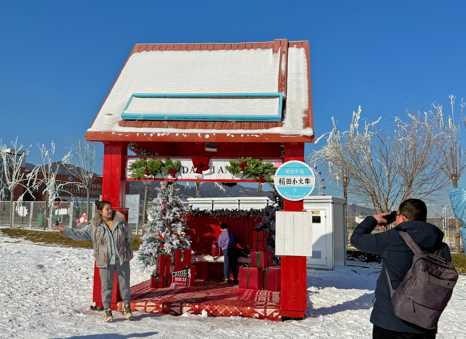 稻田公园把北欧雪国搬进了稻田,放眼望去,雪场银装素裹,雪山蜿蜒起伏。走进雪场,人声鼎沸、欢乐不断,绕过雪国小镇零星散落的雪屋,在雪山东侧与一群雪地精灵不期而遇。极地雪山北侧精心打造15条60米长的雪地滑道,乘坐雪圈,从雪滑梯上漂移而下,体验雪中飞驰的感觉。翻越雪山,从雪国小镇的欢乐浪漫来到了北欧雪原,西侧是茫茫的沙漠雪原,在霍比特小屋和游客的陪伴下多了丝温情。往西南侧走去,苍松翠柏中伫立着几座星空屋,游客可以来一场奇特的雪地露营体验,和浪漫的土耳其热气球拍照,也可以乘坐雪国列车欣赏极地风光。