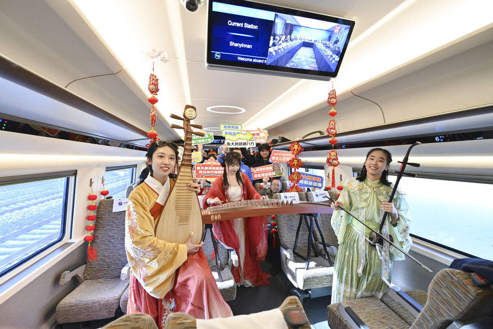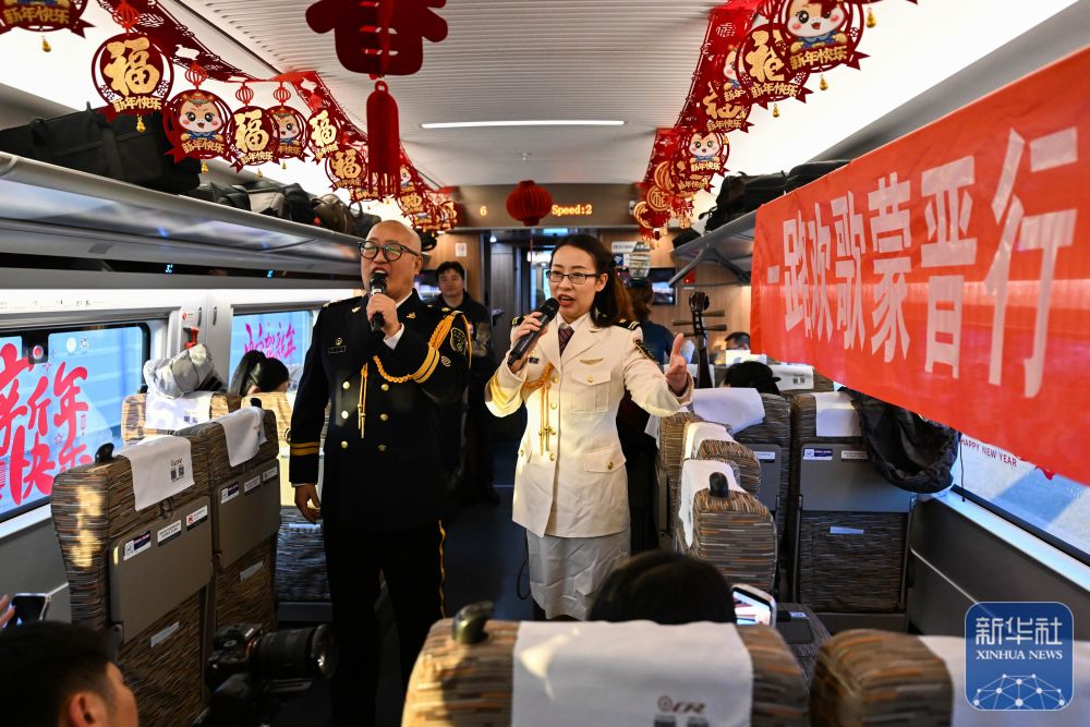 12月31日,演员在朔州东站开往呼和浩特东站的G4408次列车上表演。