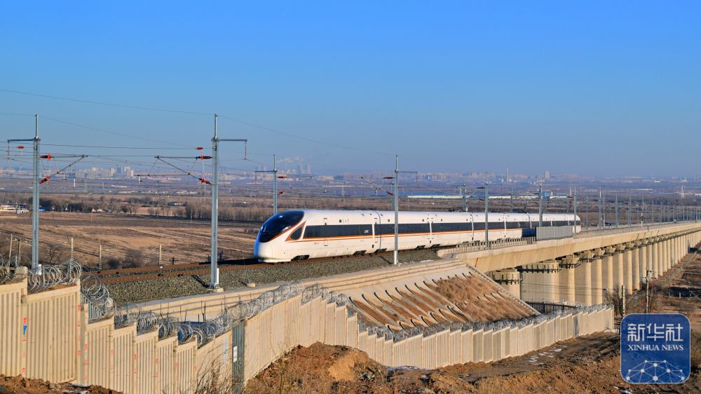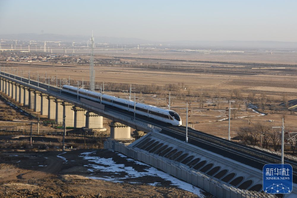 12月31日,G4798/5次复兴号动车组列车行驶在集大原高铁乌兰察布至丰镇北区间。新华社发(张劲杰 摄)
