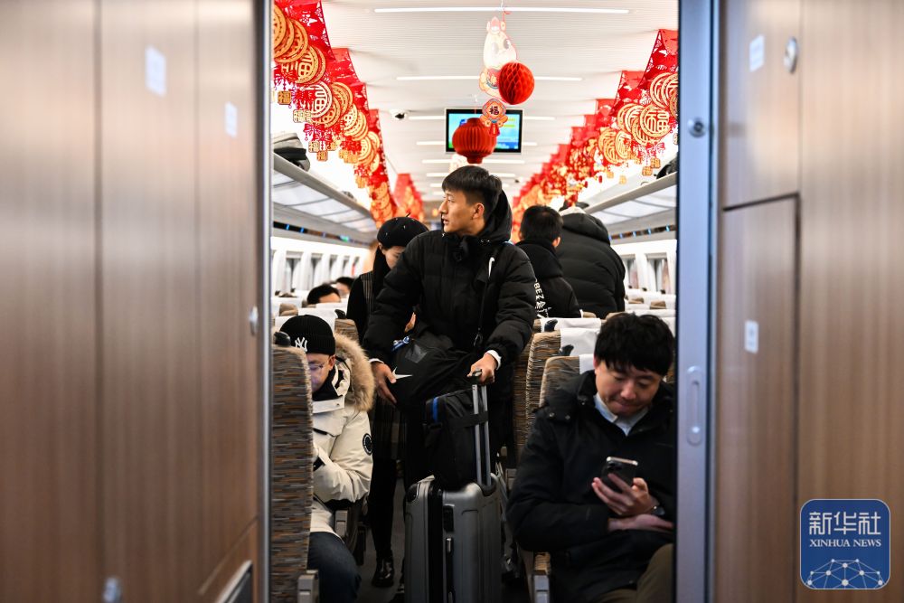 12月31日,一名乘客在朔州东站开往呼和浩特东站的G4408次列车上拍照。