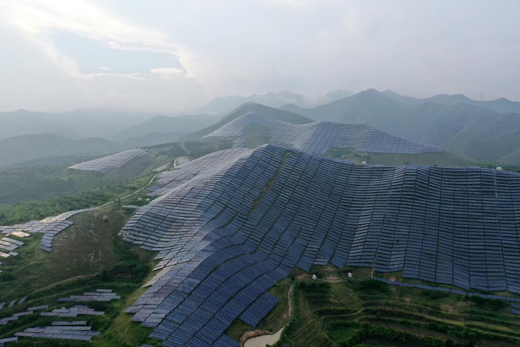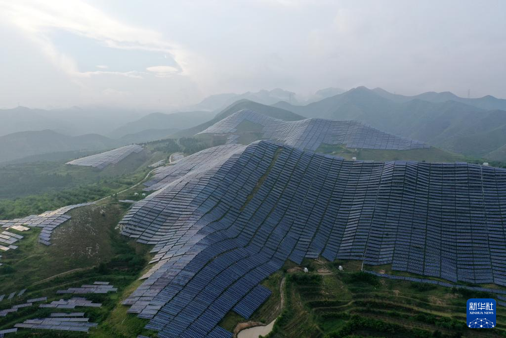 这是位于山西省大同市云州区杜庄乡土井村的“熊猫电站”(2024年8月19日摄,无人机照片)。新华社发(赵展 摄)