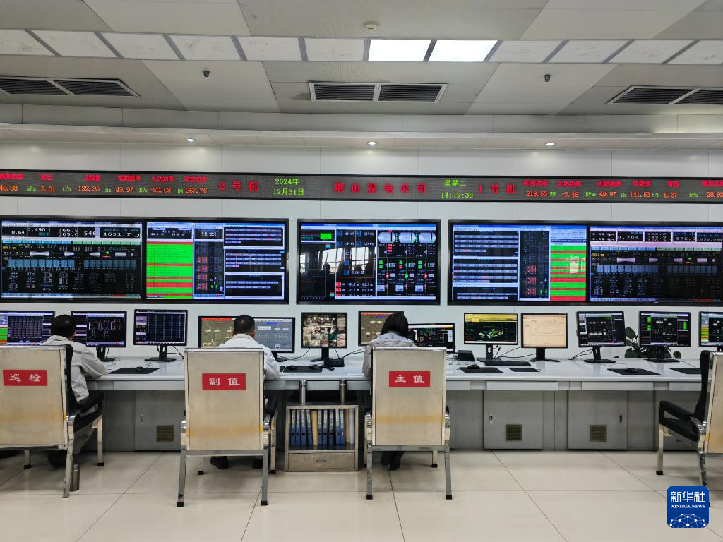 工作人员在晋控电力塔山发电山西有限公司调度中心忙碌(2024年12月31日摄)。新华社记者 樊欣阳 摄