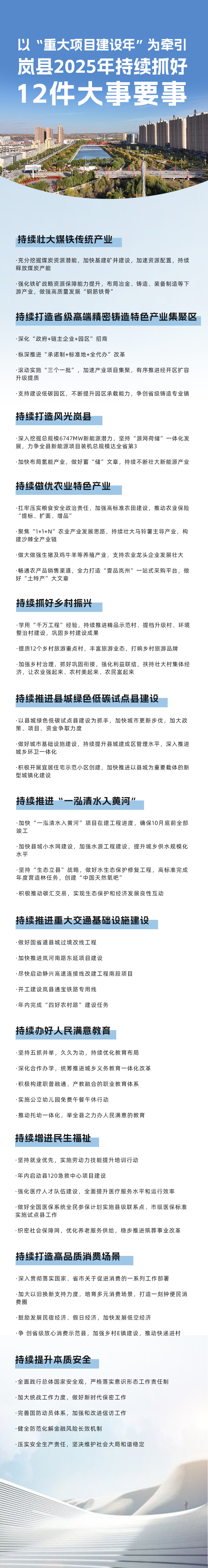 2025年是“十四五”规划收官之年,岚县将聚焦12件大事要事,做好全年各项重点工作。