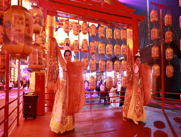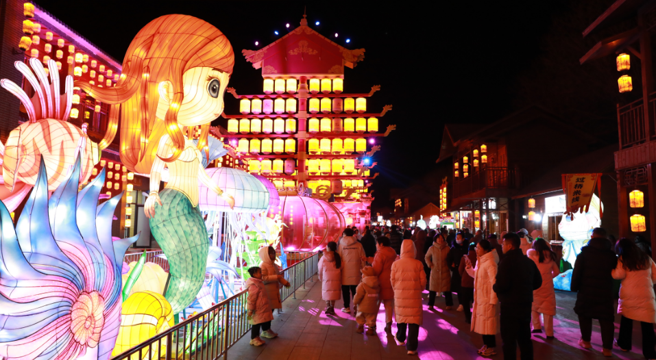 春节假期已结束,但长治振兴小镇依旧热闹。每当夜幕降临,灯光亮起,处处流光溢彩,让游客感受浓浓的年味。