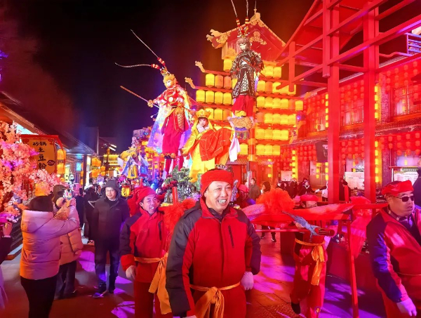 醒狮门柱灯、黑神话・悟空花灯、十二生肖花灯……光影交错间,小镇奇妙夜的浪漫随处可见。