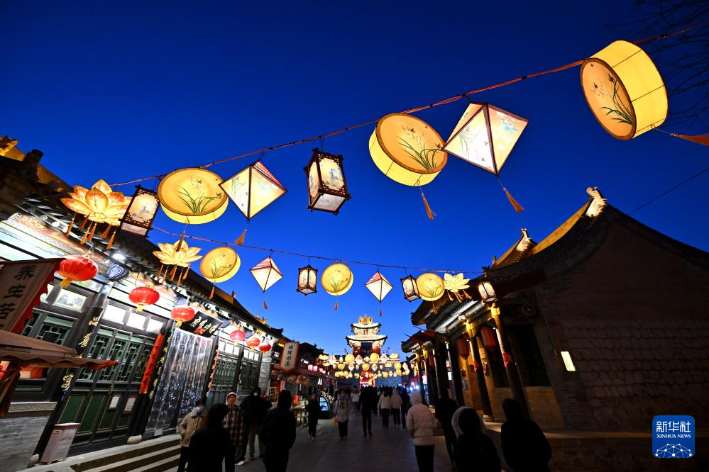 新春伊始,在太原市晋源区太原古县城举办的2025太原古县城花灯会上,各类花灯流光溢彩、璀璨夺目,吸引游人前来观赏。