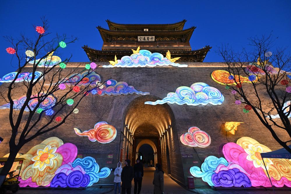 2月5日,游人在太原市晋源区太原古县城赏花灯。