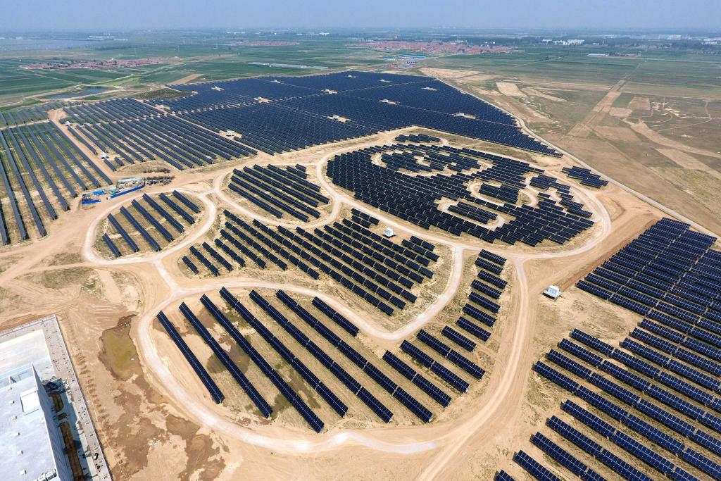 这是位于山西省大同市云州区的以熊猫为造型的光伏电站。新华社记者詹彦 摄