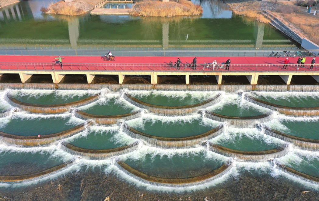 骑行爱好者在太原汾河景区健身赏景-新华网
