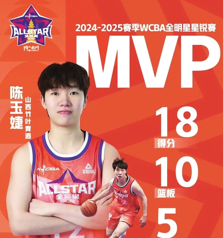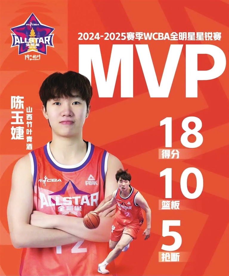 2月23日,2025年WCBA全明星周末活动在杭州奥体中心体育馆收官。山西竹叶青酒女篮共有翟若云、宋珂昕、陈玉婕、霍俊彤和奥杜达5名球员登场献技。