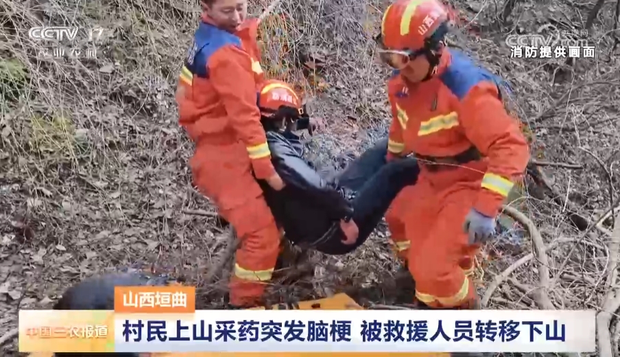山西垣曲:村民上山采药突发脑梗 被救援人员转移下山