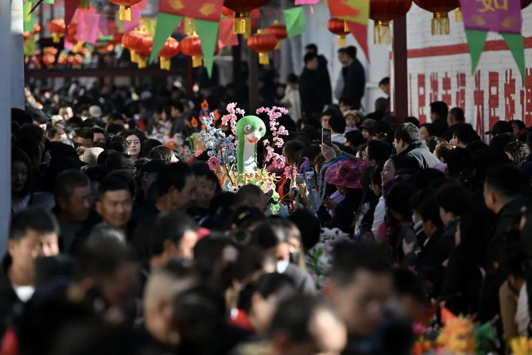 岚城镇北街的“春满岚州 福暖巳季”面供展示区,还原了传统供会的场景。生动可爱的小蛇、潮流新宠哪吒、山西黑悟空景点大全等面塑作品以其独特的造型和创意吸引了众多游客驻足拍照打卡。这些面塑作品不仅传承了非遗文化的精髓,更以创新的表达方式让面塑焕发出新活力。