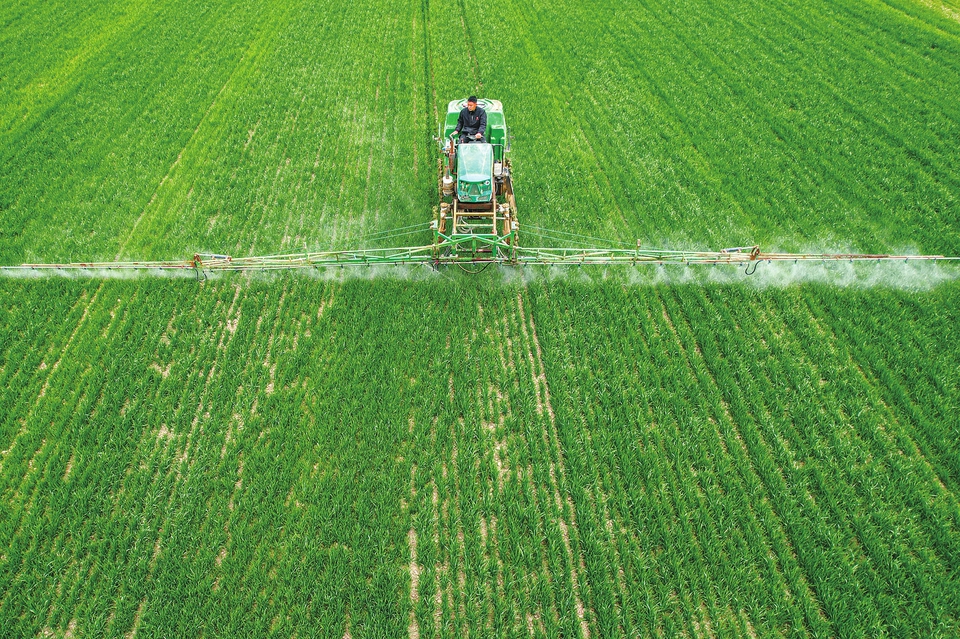 3月29日,永济市卿头镇的麦田里,农机手正驾驶喷雾机为连片小麦喷施叶面肥。当前正是小麦返青拔节的关键时节,喷洒叶面肥可为小麦高产增收打下良好基础。