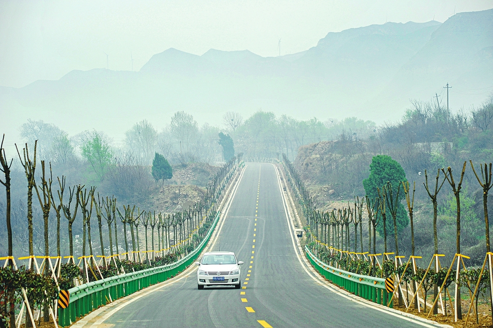 3月29日,一辆汽车行驶在永济市境内的沿山旅游路上,与薄雾笼罩下的中条山、绿树构成一幅绝美的“中国画”。近年来,永济市持续推进乡村公路建设,不断完善乡村路网设施,助力乡村发展。
