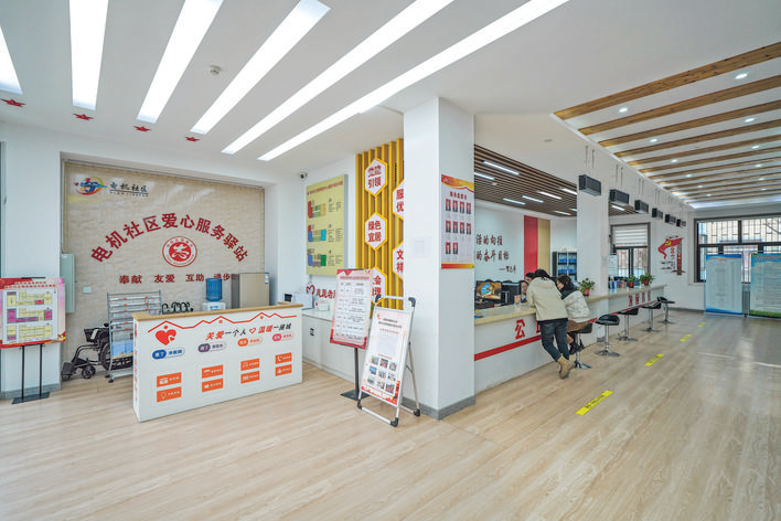 电机社区合理规划党群服务中心功能分区,建立首问责任制、接待登记制、“一次性”告知制、全程代办制、限期办结制等工作机制,开设了爱心驿站、爱心理发室,为辖区环卫工人、外卖骑手、快递小哥、小区居民等提供十多项免费低偿服务和生活服务。