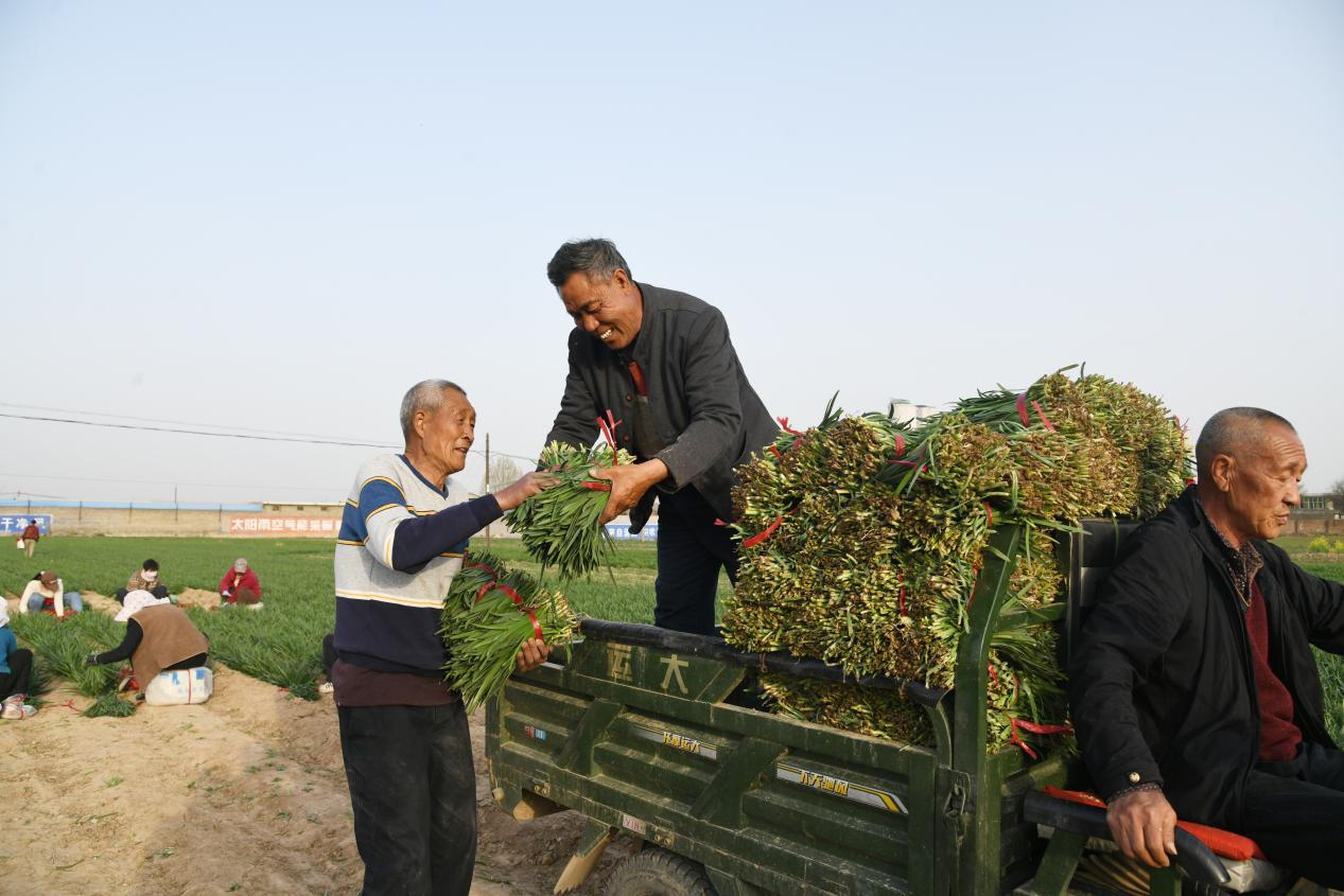 近年来,闻喜县运用党建引领+专业合作社统筹+农户种植方式,发展大田韭菜种植,开辟出一年三茬三收的增收渠道。