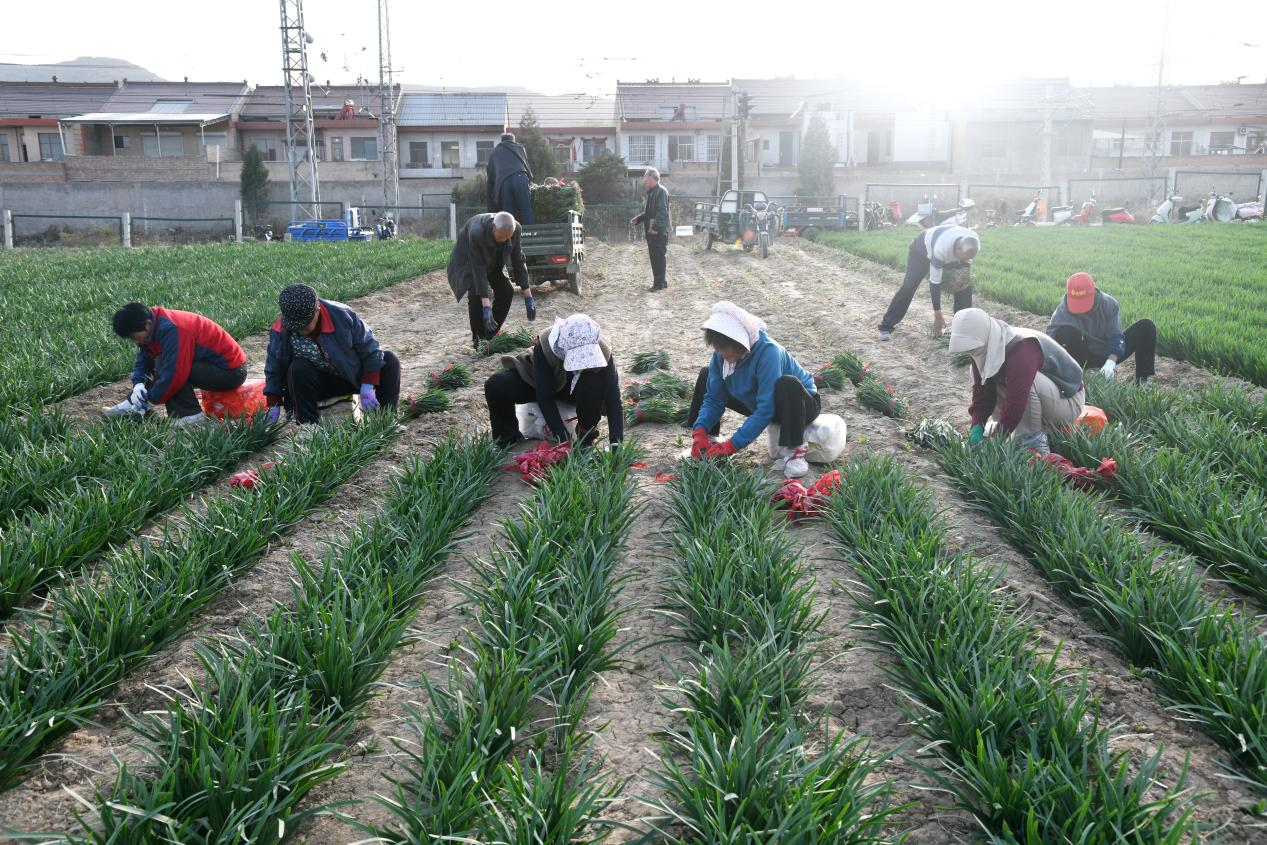 闻喜种植的6000亩大田韭菜不仅为种植户带来可观的经济收入,同时为近千余名农村劳动力提供了在家门口季节性务工的岗位。(杨一敏 温徐旺)