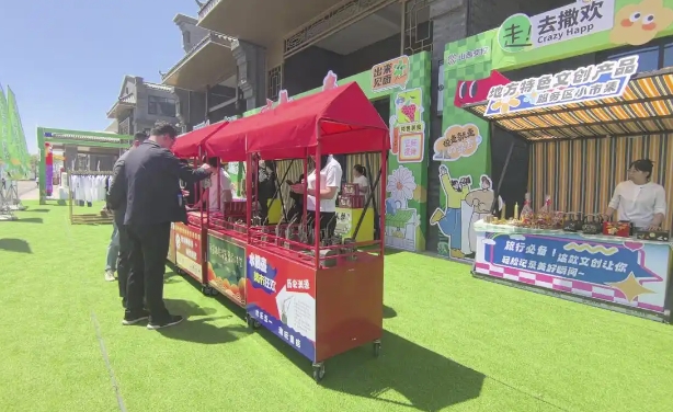 4月30日上午,在平遥服务区,以“晋商故里·非遗市集”为分主题的“小市集”热闹非凡,平遥牛肉、推光漆器、汾酒等特色产品、文创用品琳琅满目;过油肉、平遥碗托、平遥包子等50余种特色小吃花样摆放。