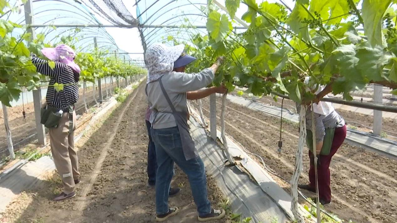 眼下正值葡萄管护关键期,在运城市盐湖区金井乡,农户们抢抓农时,积极开展田间管护,为葡萄丰产丰收作好准备。