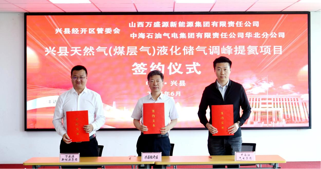 兴县经济技术开发区管委会与山西万盛源新能源集团有限责任公司、中海石油气电集团有限责任公司华北分公司围绕项目进行签约。该项目总投资约11.5亿元,投产后可年产液化天然气48万吨,副产氦气32万立方米,年产值达25亿元,预计可带动就业130余人。