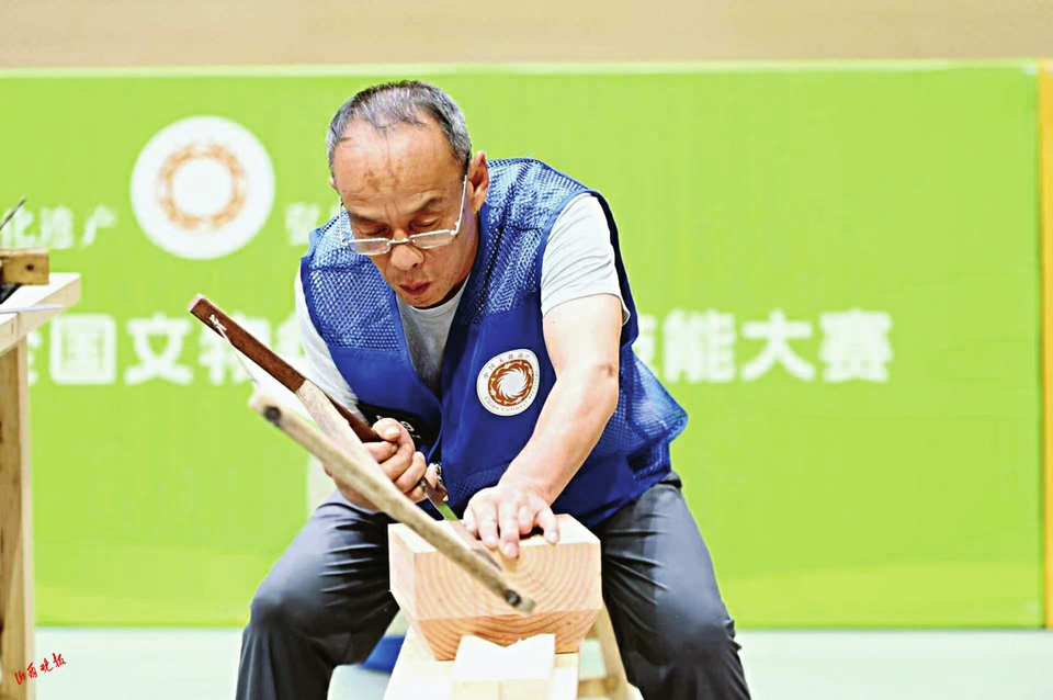 山西选手赵玉宝在木作文物修复师项目比赛现场。