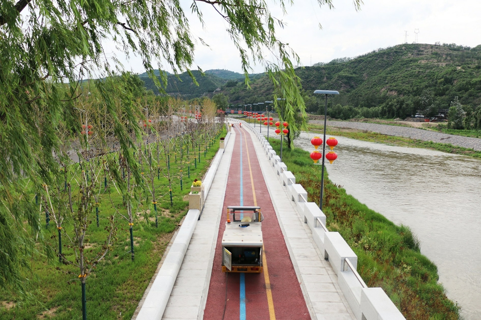 据介绍,汾河干流灵石县段综合治理工程崔家沟段从2024年1月至9月完成1.8公里的堤防工程,并对路面、护栏、路灯、观景平台、人行步道等进行了升级亮化。