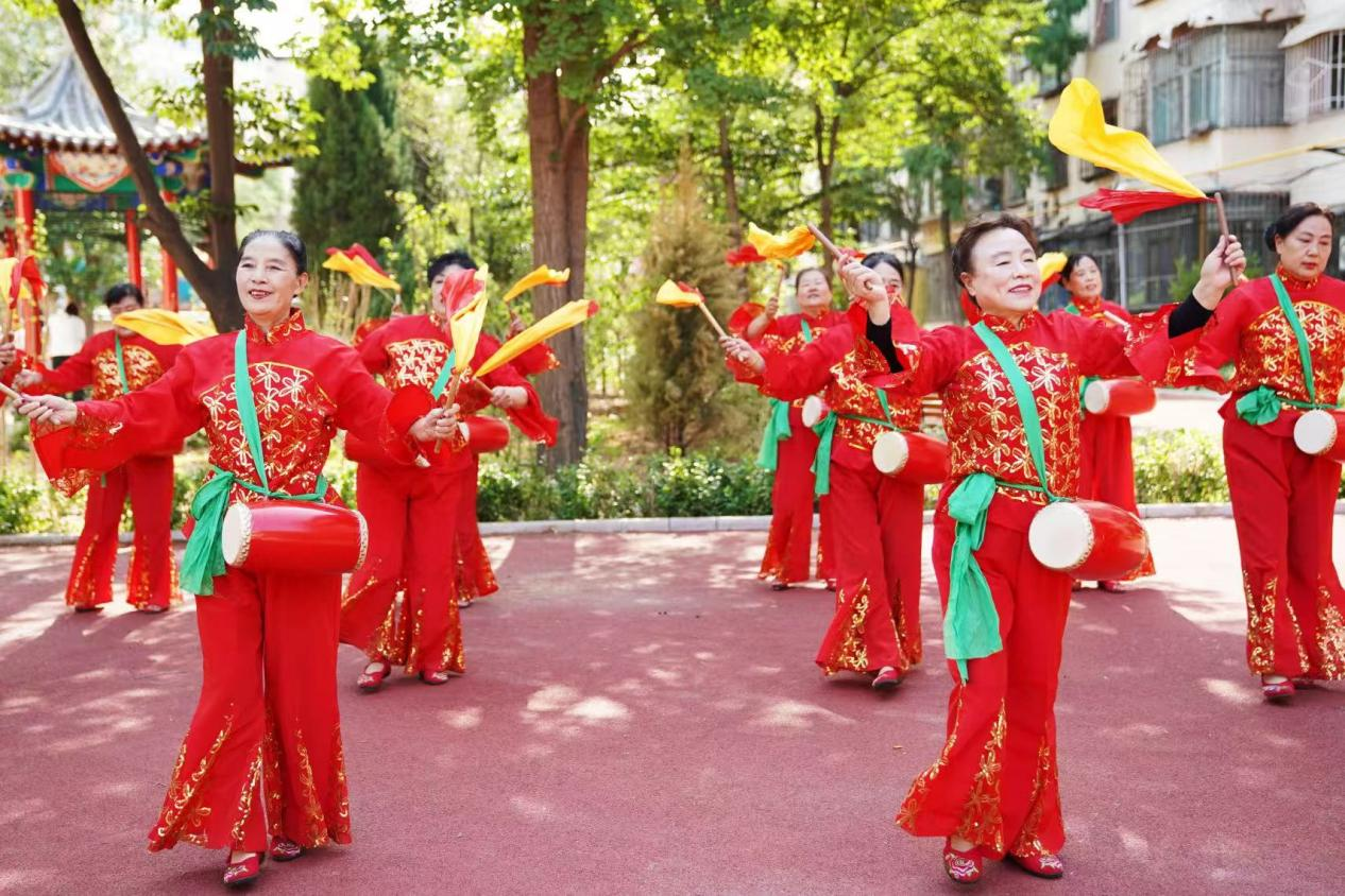 “以前我们排练只能在居民楼前的小空地上,现在出门就是‘舞台’,可以大显身手了。”腰鼓队领队李建萍说。