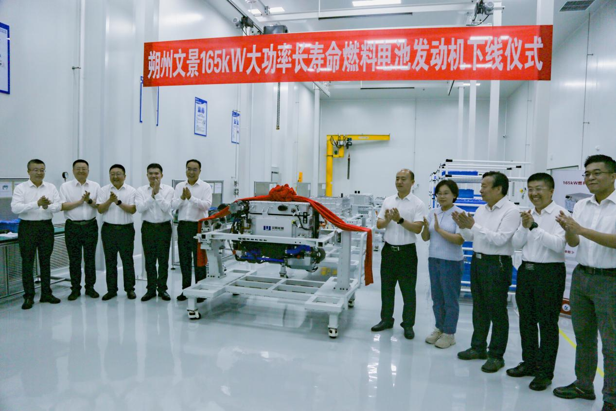 当日,朔州文景165kW大功率长寿命燃料电池发动机下线。