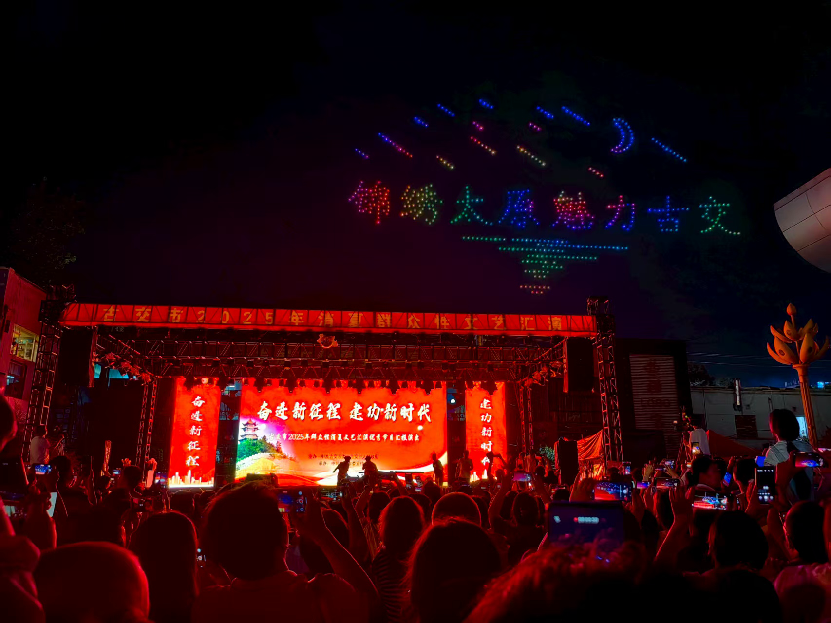 同时,汇报演出当晚还进行了无人机灯光秀表演以及农特品、特色美食推广等活动。500架无人机共同演绎的灯光秀,在夜空中呈现“锦绣太原 魅力古交”、金牛、祥龙等造型,吸引众多市民驻足观看。