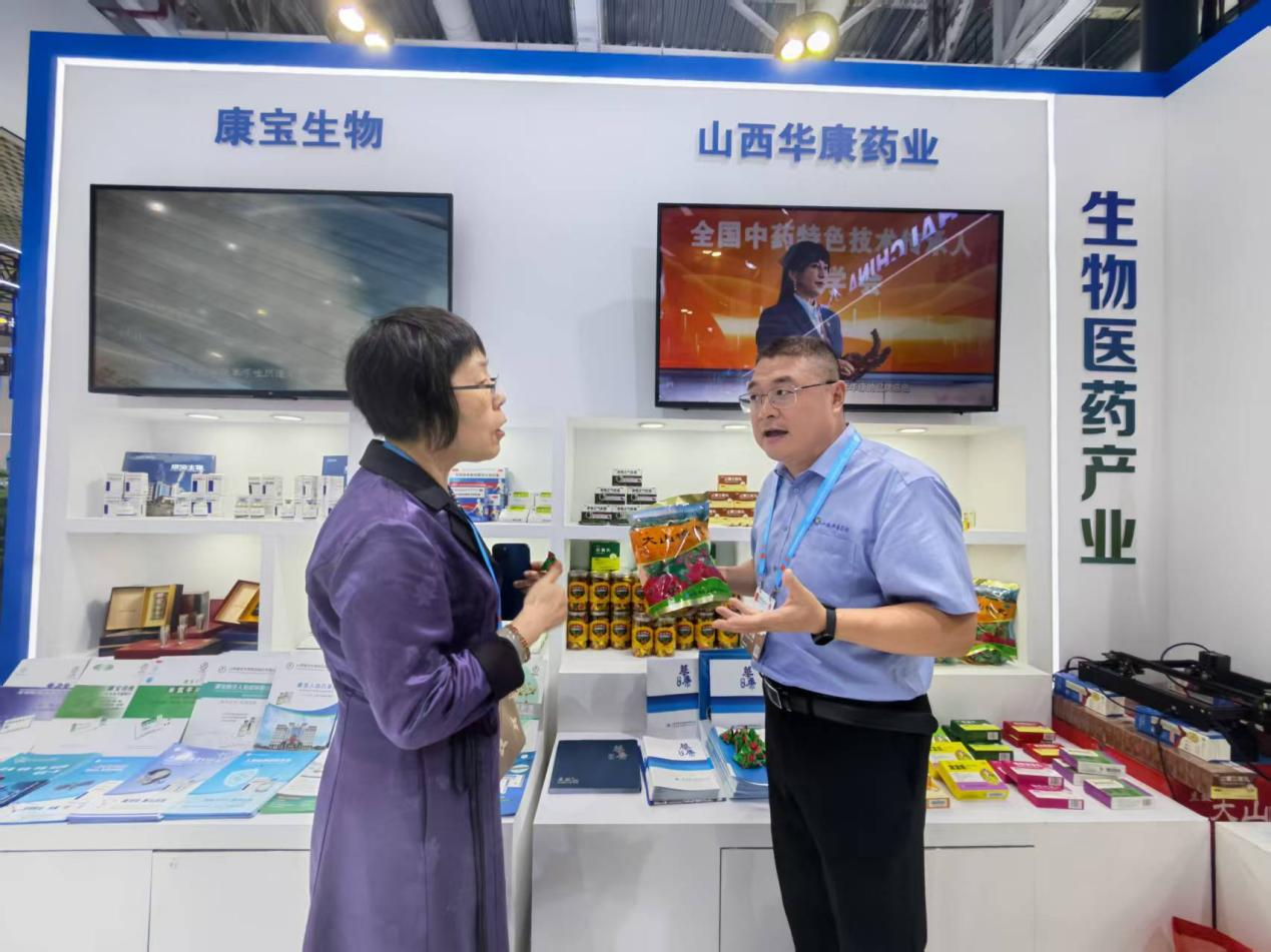 华康药业展位负责人王军强介绍道:“我们是一家集生产、营销、研发为一体的现代化中药生产企业,拥有大山楂丸、止嗽立效丸、麻仁润肠丸、冠心生脉丸等众多经典中药产品,同时在现代制剂领域不断创新,致力于为消费者提供更安全、有效的中药产品。”