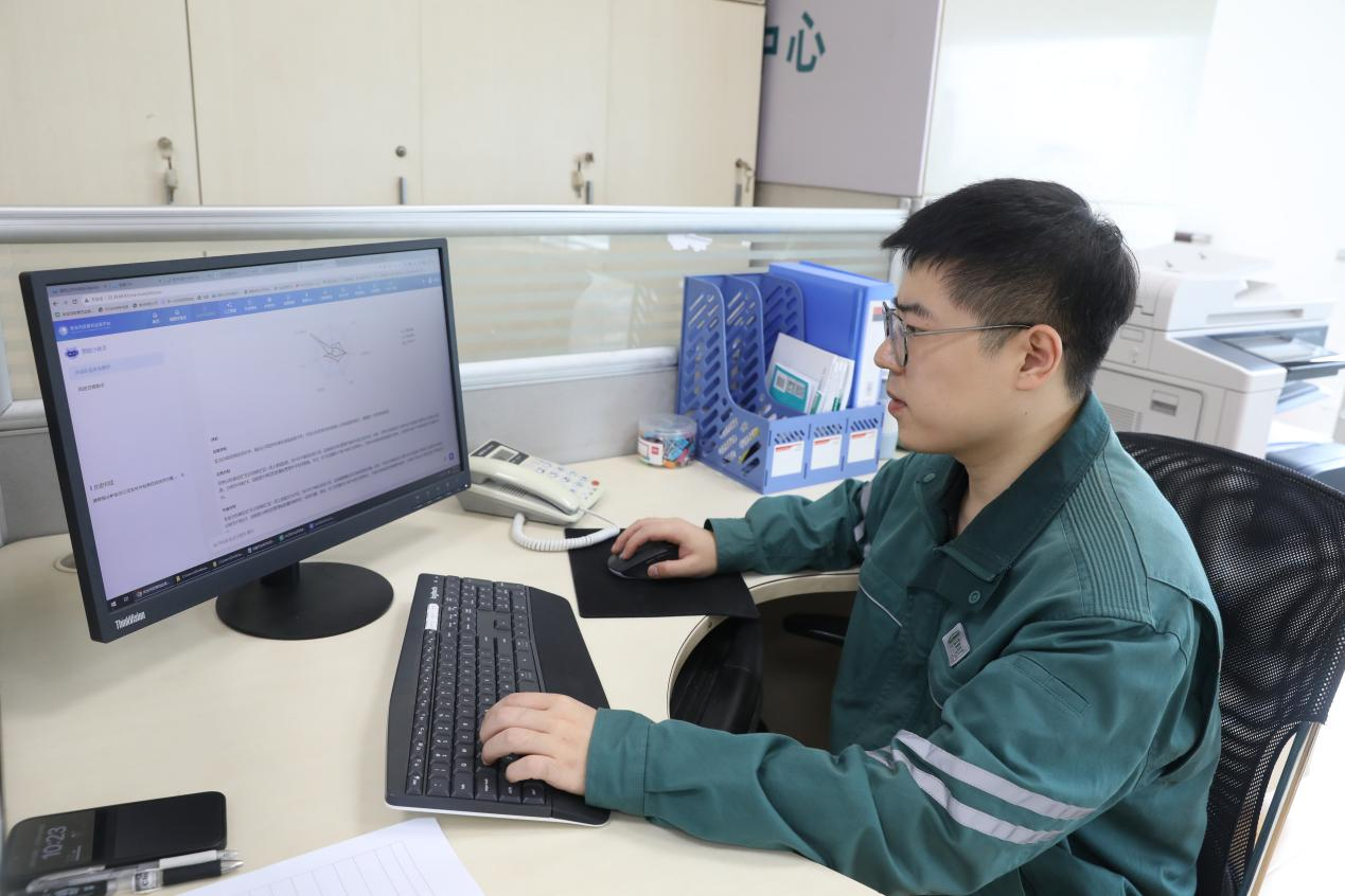 工作人员正在应用外包队伍安全智评小助手生成报告。(闫永芳 摄)