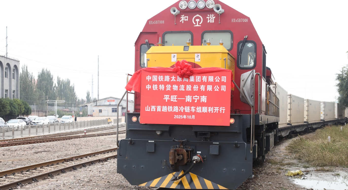 新华社太原10月12日电(记者许雄)10月12日下午,一列装载8只40英尺冷链集装箱和1只发电箱的列车从山西大同平旺火车站发车,驶往近3000公里外的南宁南站,开启了国铁太原局冷链运输集装化模式。