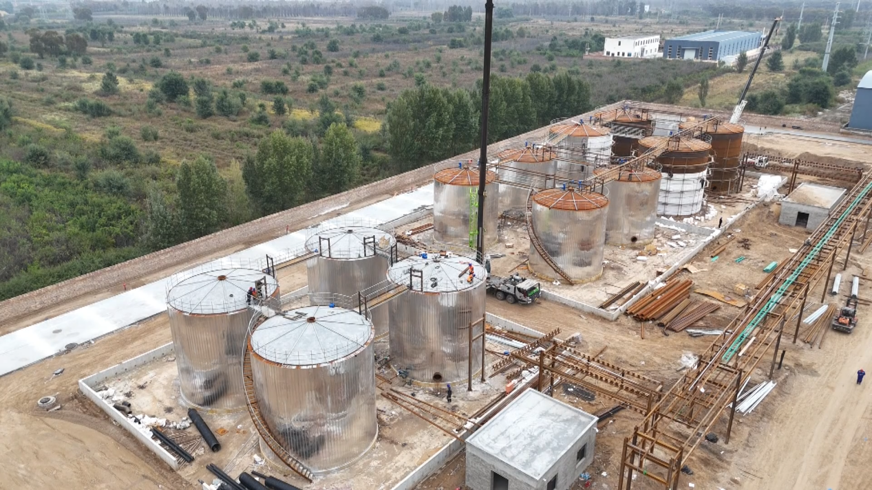 储罐区、科研楼等主体建筑已顺利落成,精馏残渣处理、废气处理等核心设备均完成安装,其他各类配套设备在陆续进场。电工穿梭于管线间调试电路网络,土建团队操控挖掘机、压路机推进厂区配套设施建设,灌装区工人加紧开展内部设备安装,忙碌的身影交织成一幅紧张有序的攻坚图景。