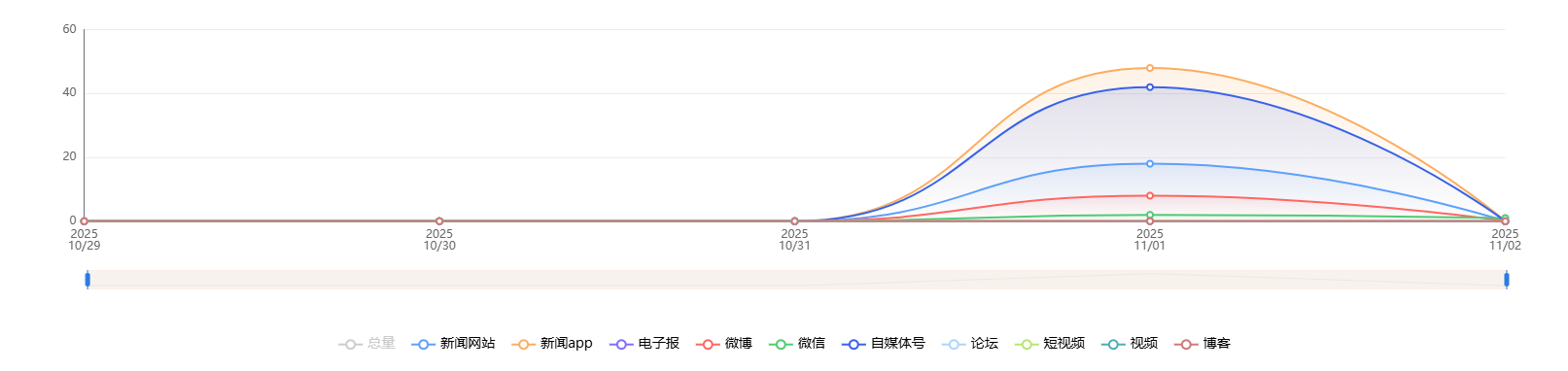 截至目前,该文章在互联网上传播总量共59篇。各信源的信息发布情况中,自媒体号和新闻APP占比最大。(数据来源:新华睿思·数媒智慧分析平台)