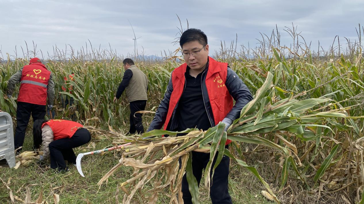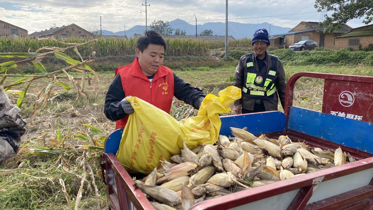 党员干部帮助农户抢收玉米