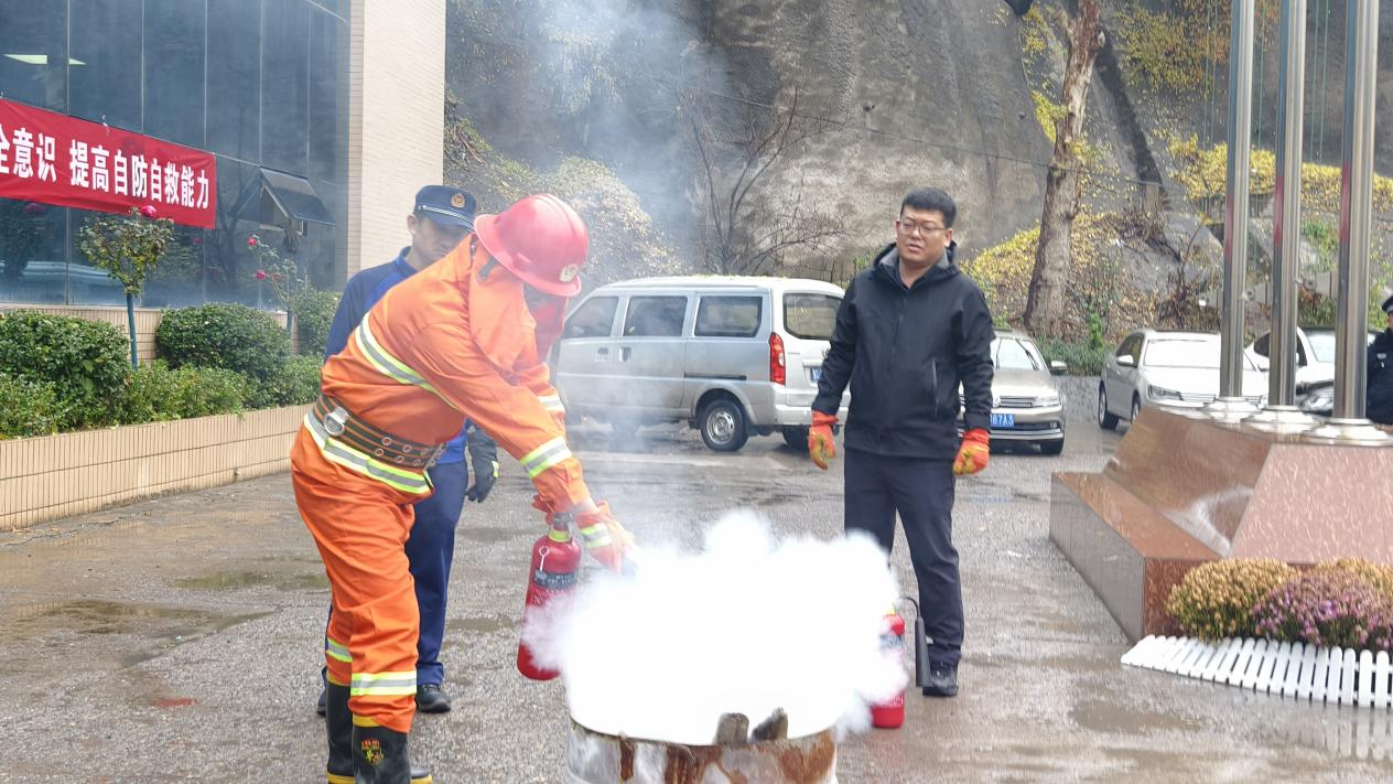 演练模拟了办公楼二楼因电器短路引发火情。集团公司应急救援大队战斗员与太行公司疏散引导员一边通过扩音设备引导室内人员用湿毛巾捂口鼻,低姿弯腰沿墙壁撤离,一边快速划定疏散路线,维持现场秩序。