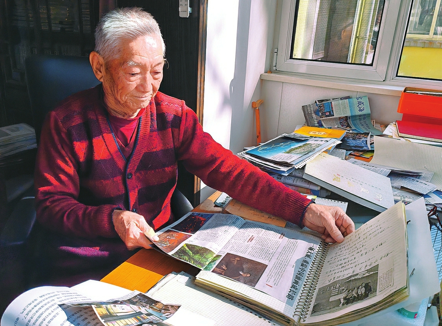 11月28日上午10时,初冬的暖阳洒在太原市晋源区晋祠镇崇文苑的一户民居窗前。83岁的郭永安老人坐在书桌前,摊开报纸、翻出活页日记本开始读报、选图、裁剪、整理、排版、粘贴、标注,这是他坚持了61年的日常。