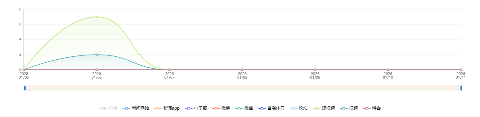 截至目前,该文章在互联网上传播总量共9篇。各信源的信息发布情况中,短视频占比最高。(数据来源:新华睿思数据云图分析平台)