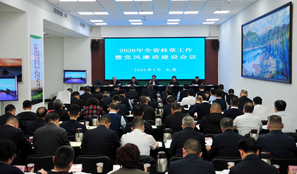 1月29日,山西省林业和草原局召开2026年山西省林草工作暨党风廉政建设会议,总结2025年和“十四五”时期工作,谋划部署2026年重点任务。