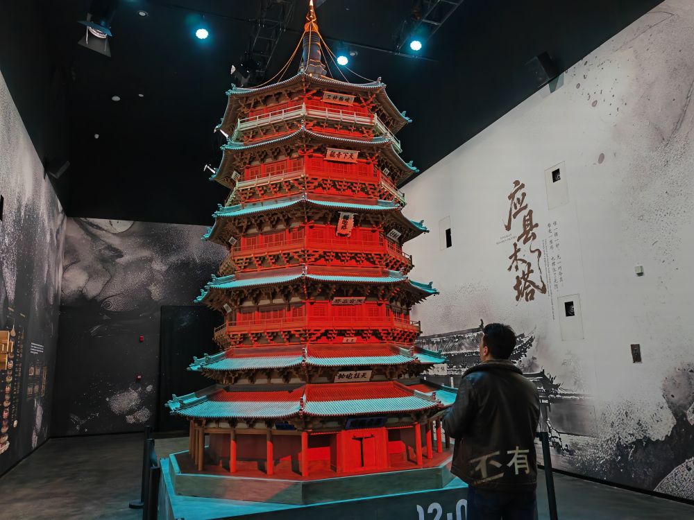 将手电筒的光束打到眼前的“壁画”上,上面的神祇便“活”了过来——有的正襟危坐、有的交头接耳……近300位道教神祇朝拜最高主神的宏大场面,让北京游客王怡然赞叹不已。在这个主题为《黑神话:悟空》的展厅里,知名历史景点如悬空寺、小西天、云冈石窟等通过数字光影、3D打印等技术,以全新方式呈现。