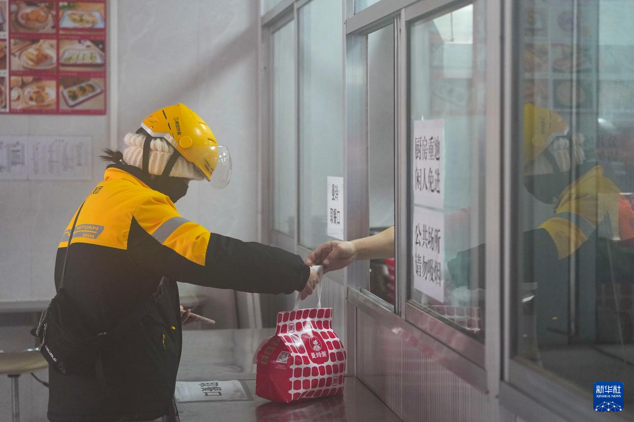 戚德敏在位于山西省太原市小店区的一家商户内取餐(1月29日摄)。新华社记者 杨晨光 摄