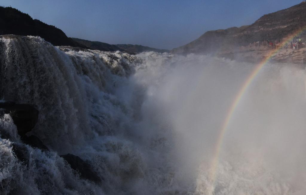 黄河壶口瀑布岸边,水声如雷。据当地水文部门介绍,随着上游冰雪消融,近日黄河壶口瀑布最大流量远超日常,壮美瀑布群景观再现。滚滚黄河水奔腾而下,如骐骥驰骋,冲出朝气蓬勃好年景。