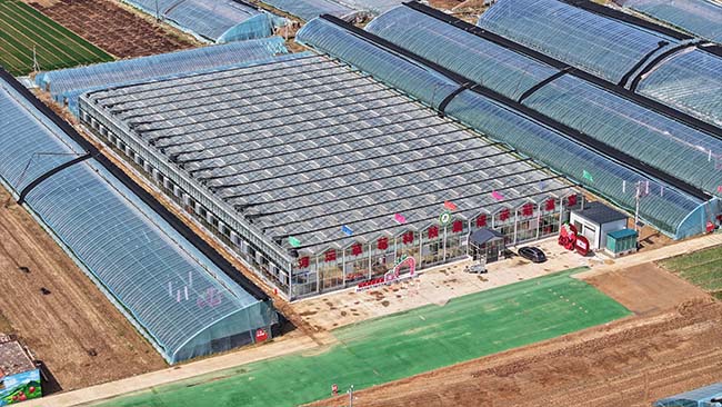 这是3月18日拍摄的山西省临汾市翼城县南唐乡河沄村智能玻璃温控大棚。新华网发(陈慧忠 摄)