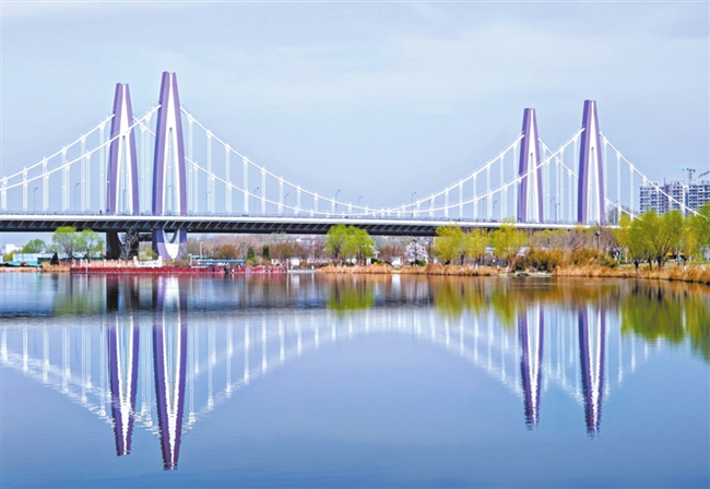 这是3月22日拍摄的临汾市洰河大桥。新华网发(闫锐鹏 摄)