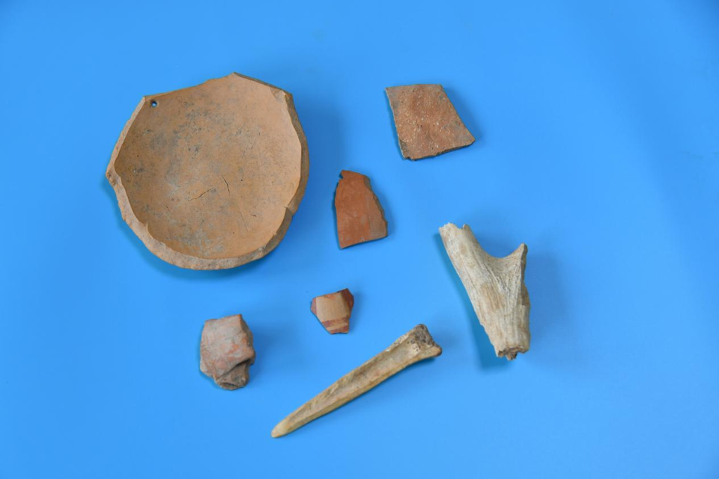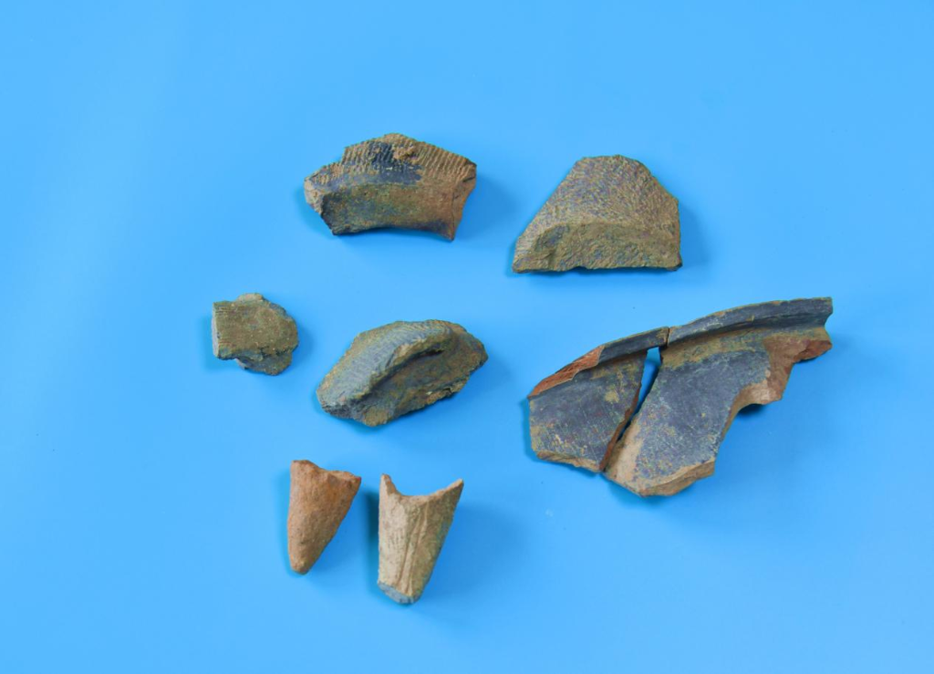 此次调查共设4处采集点,经科学勘探,确认发现灰坑3座、窑址1座。考古人员在遗址地表采集到大量遗物,经初步整理,可辨识仰韶文化、龙山文化及夏商至东周三个时期的文化层堆积,其中仰韶文化核心区主要分布在遗址南部的断崖附近。