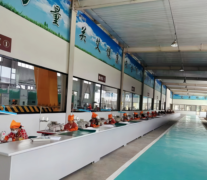 桑干河畔喜生艾草,工人们在车间制作艾草健康产品。(受访者供图)