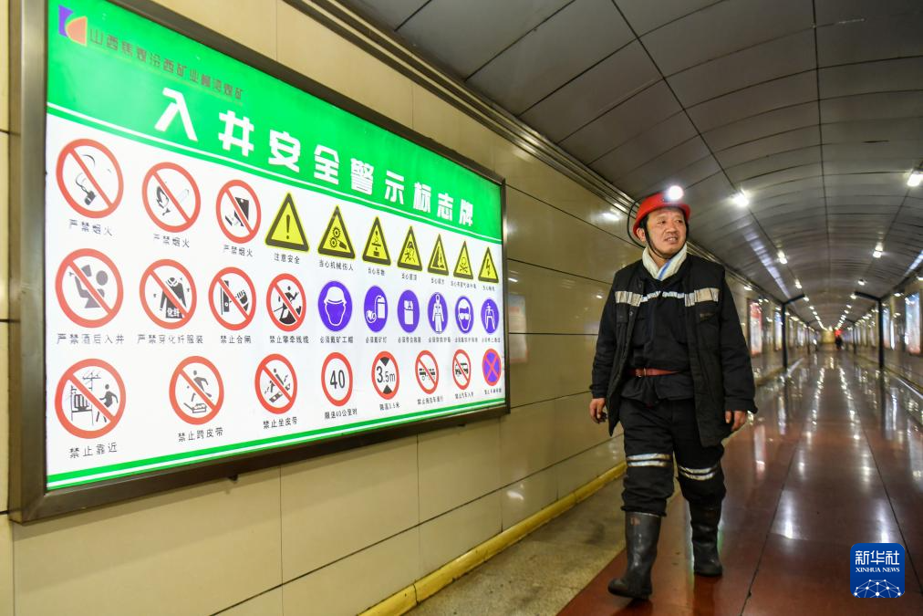 4月21日,山西焦煤汾西矿业集团柳湾煤矿矿工任世前走在入井通道内。