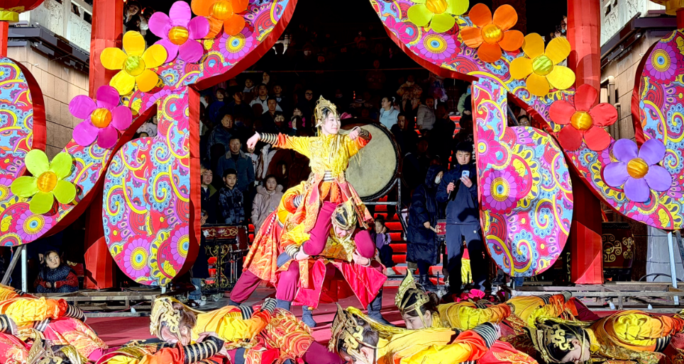 2月10日,演员在“绛州古城中国年”春节系列文化活动上表演鼓乐。